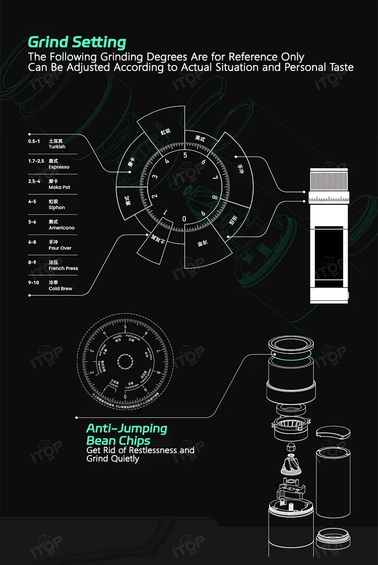 Aluminium body+ 48mm 6-Core Conical CNC Burr