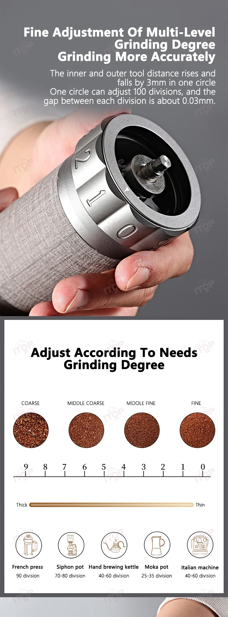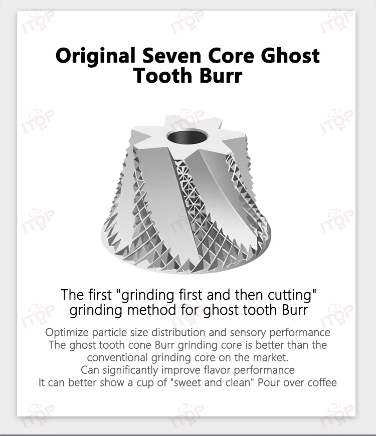 The first "grinding first and then cutting" grinding method for ghost tooth Burr. Grinding is smoother and labor-saving. Can significantly improve flavor performance.
