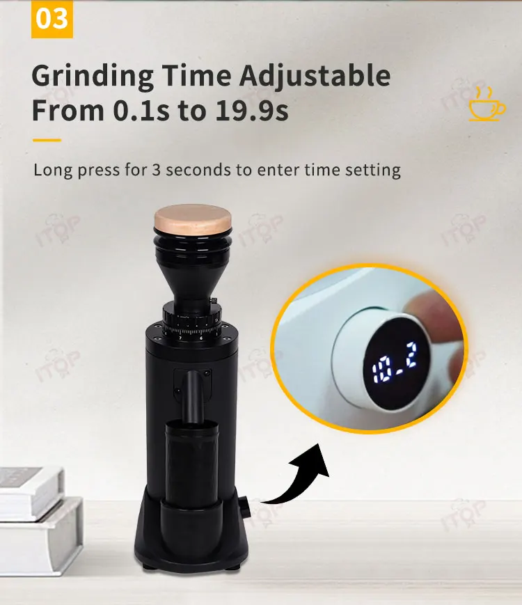 3.Grinding time adjustable from 0.1s to 19.9sLong press for 3 seconds to enter time setting